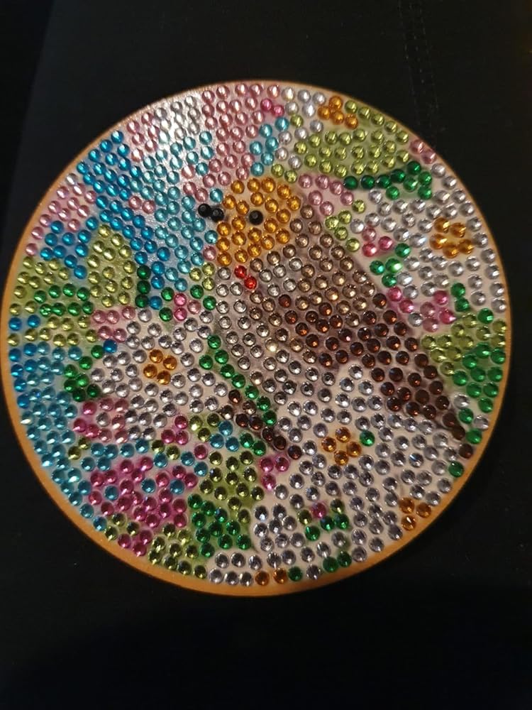Me encantan los kits de posavasos de pintura diamante porque me permiten despejarme entre otras manualidades o proyectos más amplios y grandes del propio diamond.En este caso nos encontramos ante un kit de diamante redondo, 8 posavasos de madera con pegamento vertido, motivos de pájaros que, pese a su pequeño tamaño, ofrecen una definición decente. Vienen en un soporte que te permite almacenar perfectamente los posavasosEl kit incluye todo lo que vas a necesitar para hacer la manualidad completa: los diamantes acrílicos, una bandejita y un bolígrafo básicos y la cera. Con esto podrás sumergirte en este arte que te permite dejar la mente en blanco durante un buen ratito.Muy recomendados.